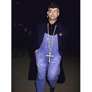 Post-plugs Elton in overalls!